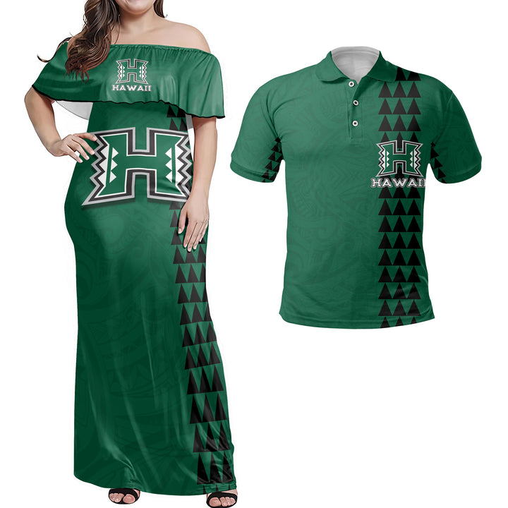 Custom Hawaii Rainbow Warriors Rugby Hawaiian Dress & Polo Matching Couple