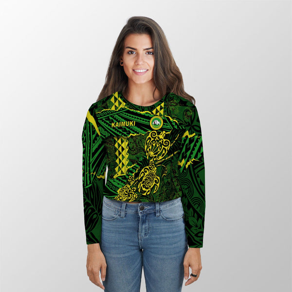 Hawaii Kaimuki High School Custom Croptop Long T Shirt Polynesian Turtle Style