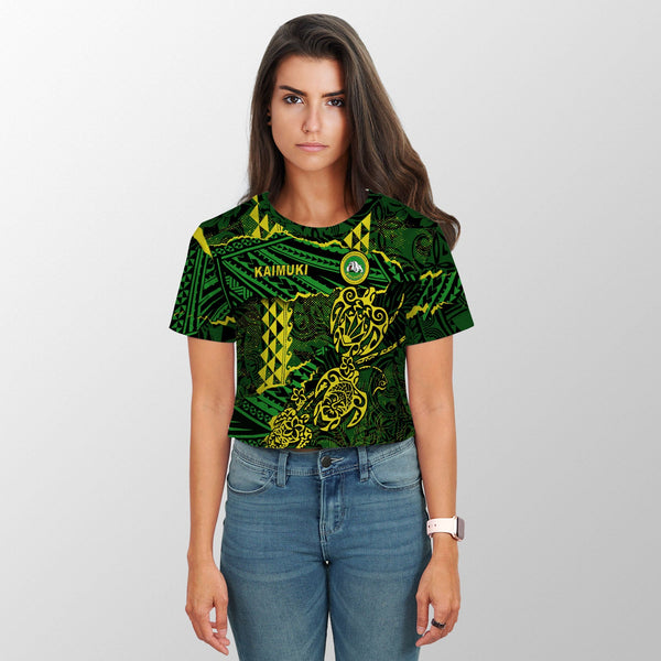 Hawaii Kaimuki High School Custom Croptop T Shirt Polynesian Turtle Style