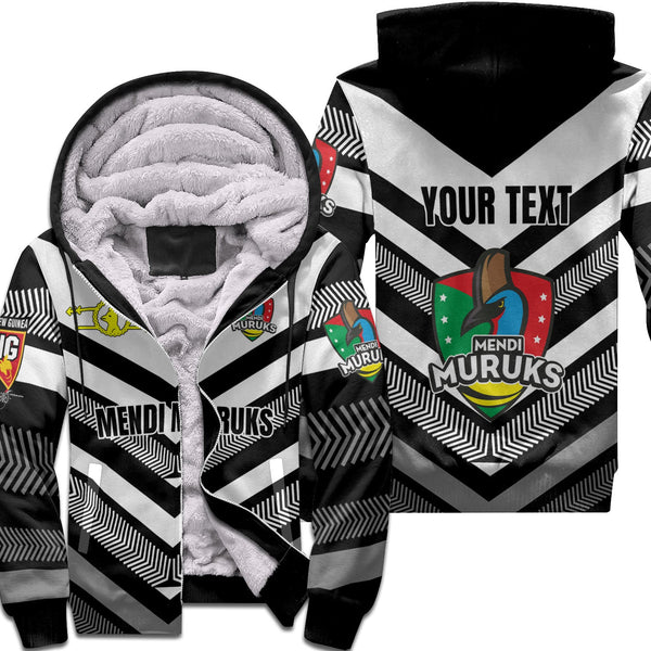 Custom Mendi Muruks Sherpa Hoodie Papua New Guinea Rugby Black & White Style
