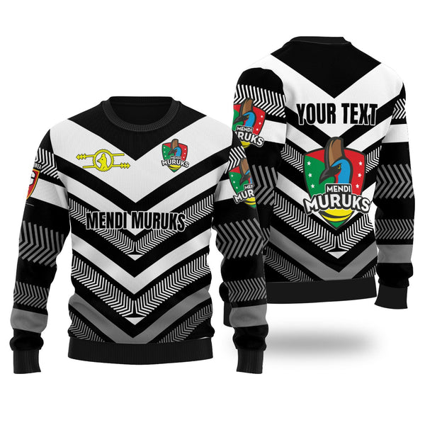 Custom Mendi Muruks Wool Ugly Sweater Papua New Guinea Rugby Black & White Style