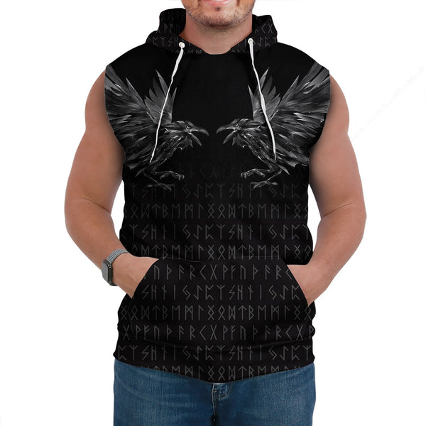 Viking Sleeveless Hoodie Odin Huginn and Muninn Rune