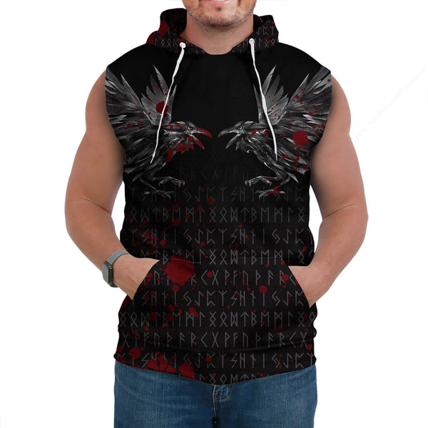 Viking Sleeveless Hoodie Odin Huginn and Muninn Rune Blood