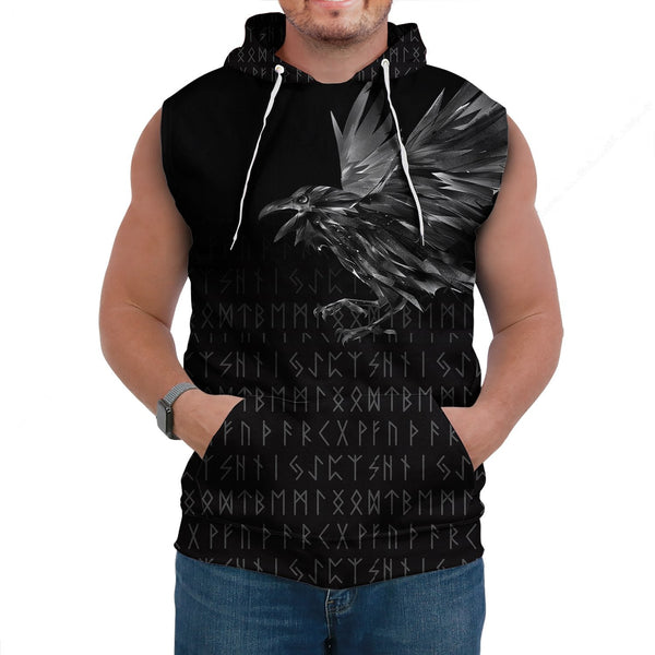 Viking Sleeveless Hoodie The Raven Of Odin Rune