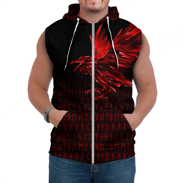 Viking Sleeveless Hoodie The Raven Of Odin Rune Blood