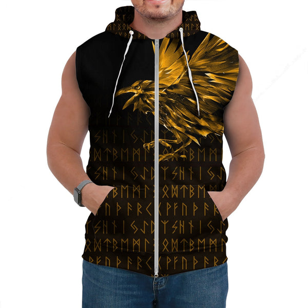 Viking Sleeveless Hoodie The Raven Of Odin Rune Gold
