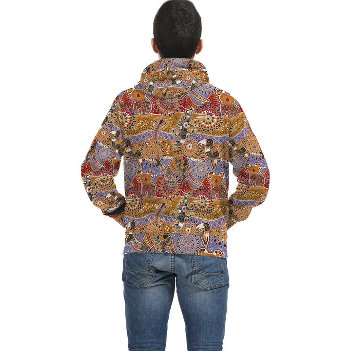 Aboriginal Hoodie - Kangaroo Koala Crocodile Patterns Pullover