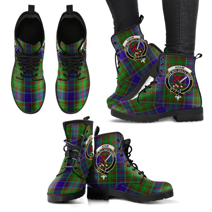 Adam Clan Leather Boot, Scottish Tartan Adam Clan Leather Boot Crest Style