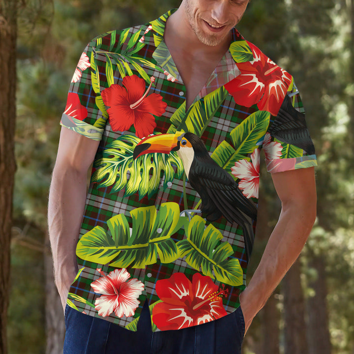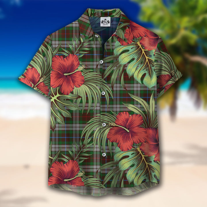 Scottish Tartan Fraser Hunting Dress Clan Hawaiian Shirt Hibiscus - Tropical Garden Style